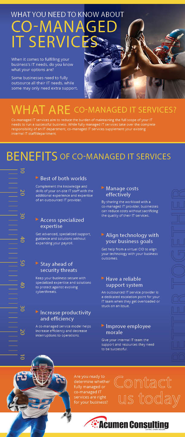 To learn more about the benefits of co-managed IT, feel free to contact us or download our informative infographic, “What You Need to Know About Co-Managed IT Services.” We’re here to help you take your business to the next level with our expert IT services.
